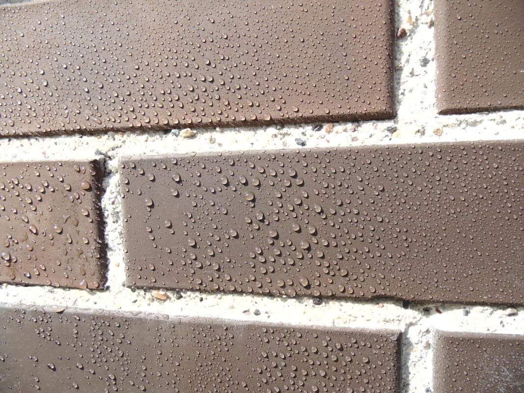 Поэтому следует оградить материал фасада от попадания в него влаги. Наиболее эффективно (по сравнению с лаками, красками и акриловыми пропитками) этот вопрос решают кремнийорганические гидрофобизаторы, после нанесения, создающие на поверхности облицовки (кирпич, штукатурка, декоративная плитка и т.д.) водоотталкивающие свойства и при этом не снижающие паропроницаемость самого материала.